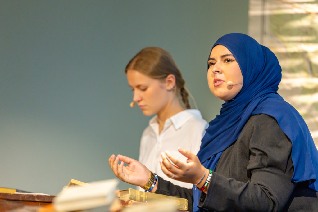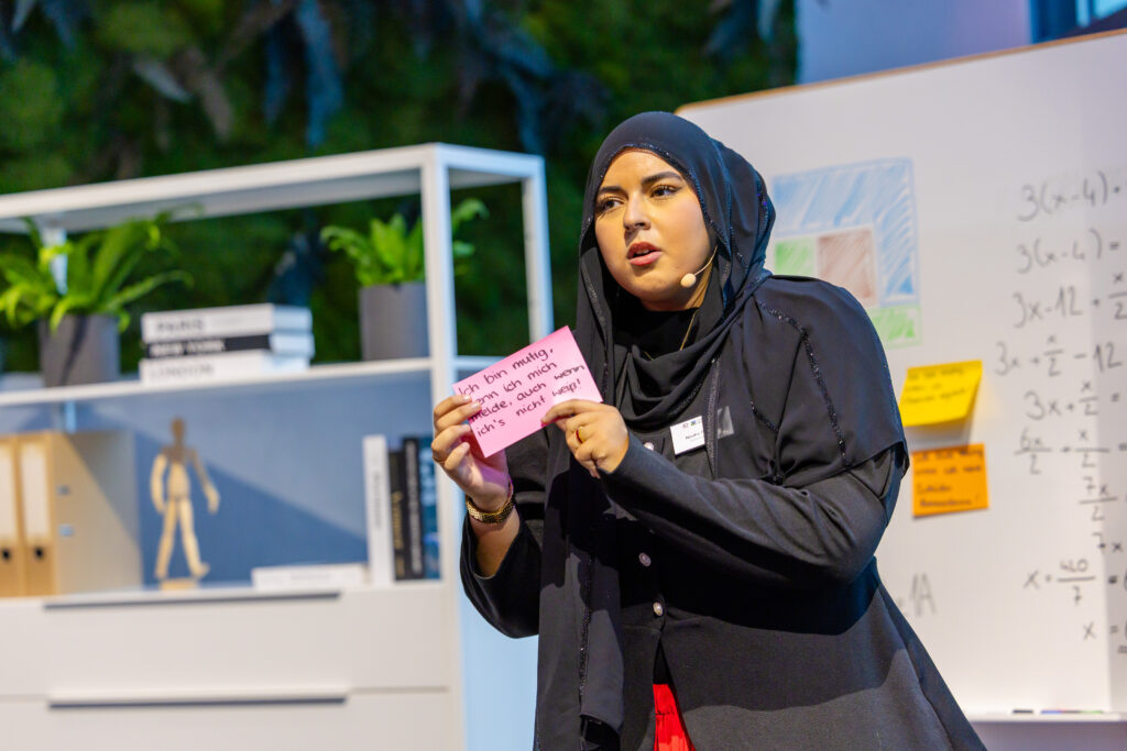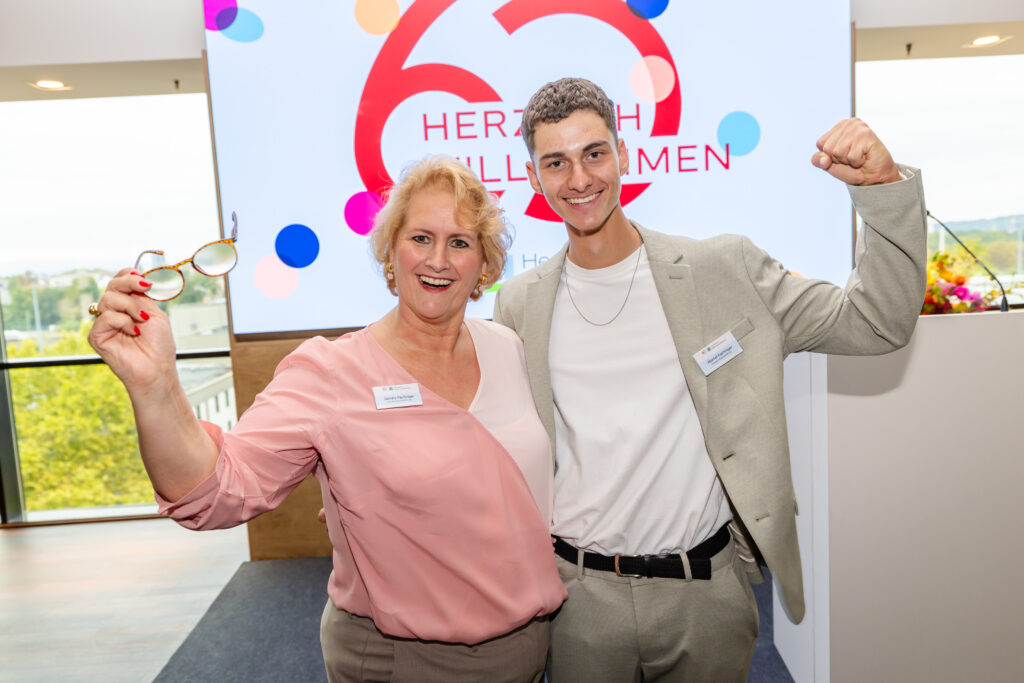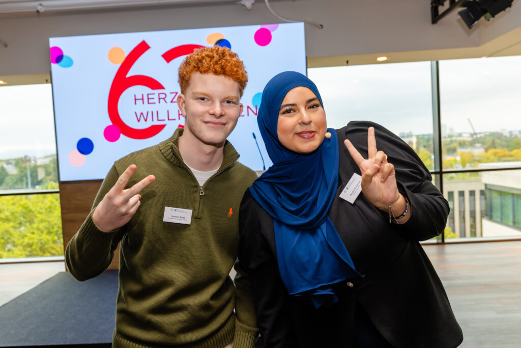 Genau das haben wir bei unserer Jubiläumsfeier am 26. September 2025 im Upper East Site in Frankfurt erlebt. Menschen, die uns nahestehen: Lehrkräfte, Schulleitungen, Forscher:innen sowie Vertreter:innen aus Politik, Wirtschaft, Medien und Gesellschaft blickten mit uns zurück auf sechs Jahrzehnte Stiftungsgeschichte – und teilten zugleich starke Perspektiven für Schulen, die heute und morgen begeistern. Begleitet wurden sie von Nouha El Jazouli und Lea Asbach, Schülerinnen der 13. Klasse der Hohen Landesschule in Hanau, die als Bertha Heraeus und Kathinka Platzhoff die Gäste symbolisch von der Vergangenheit in die Zukunft führten.